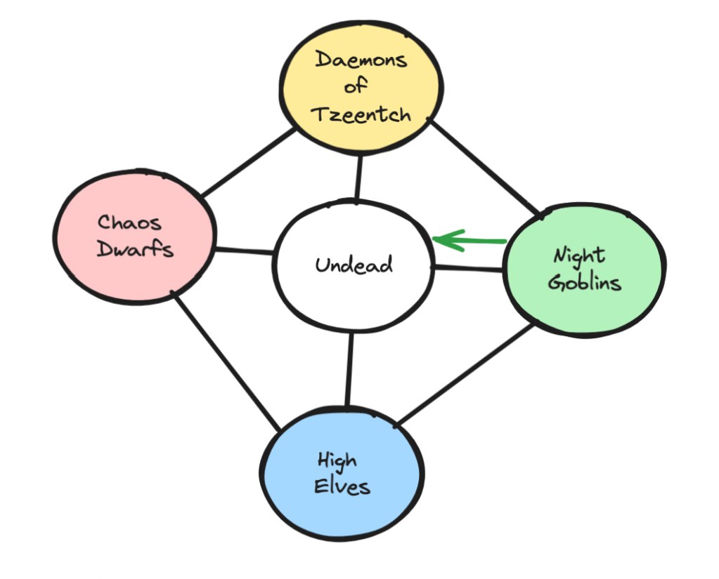 - Night Goblins have Aggression 2 + D6 roll of 5 = 7