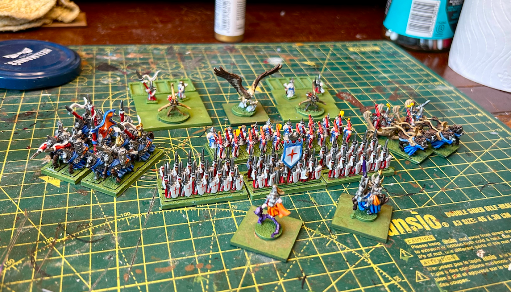 The next steps are to get the three 1000pt armies built, and in order to do that I need to work out the first fight to set the priority. Here’s the rolls for warfare in the first year: