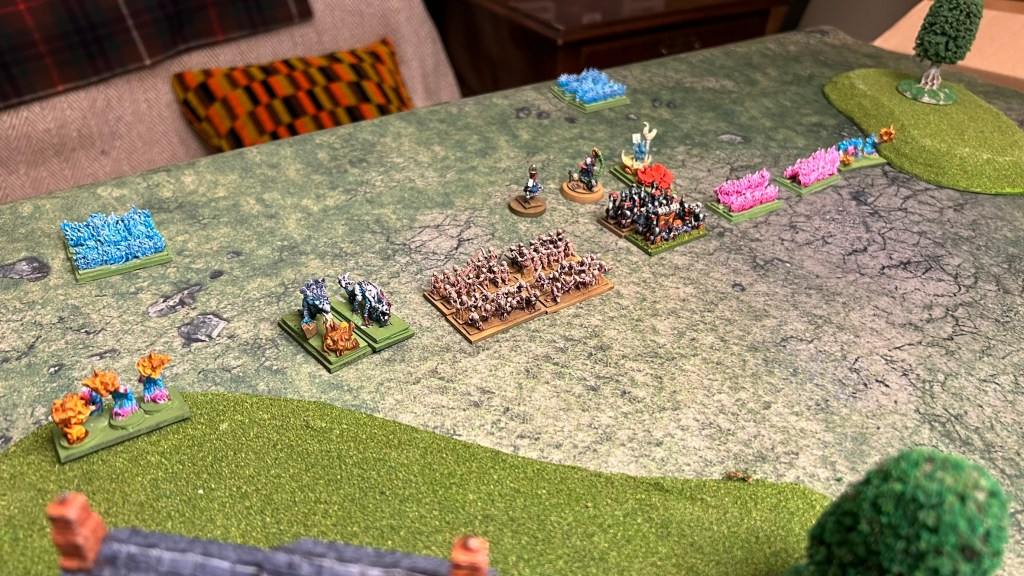 I found the use of the Magic system was very fun, as were the slightly silly rules around Bolt Throwers, Chariots, etc. – the things which made it enjoyable were the fantastical elements, rather than the rather rote pseudo-medieval combat. Kinda expected, really and it does reinforce my notion that sci-fi and fantasy need to be fantastical, not just a skin of ancients or WW2!