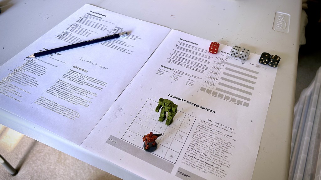 Rig is by Not Writing Games, a variant of the Rune system by Gila RPG’s. You can join the Patreon for Not Writing Games and get RIG (along with all of his other games) for just £1 – definitely worth it. If you’ve played Into the Breach, you’ll know what kind of game this is.