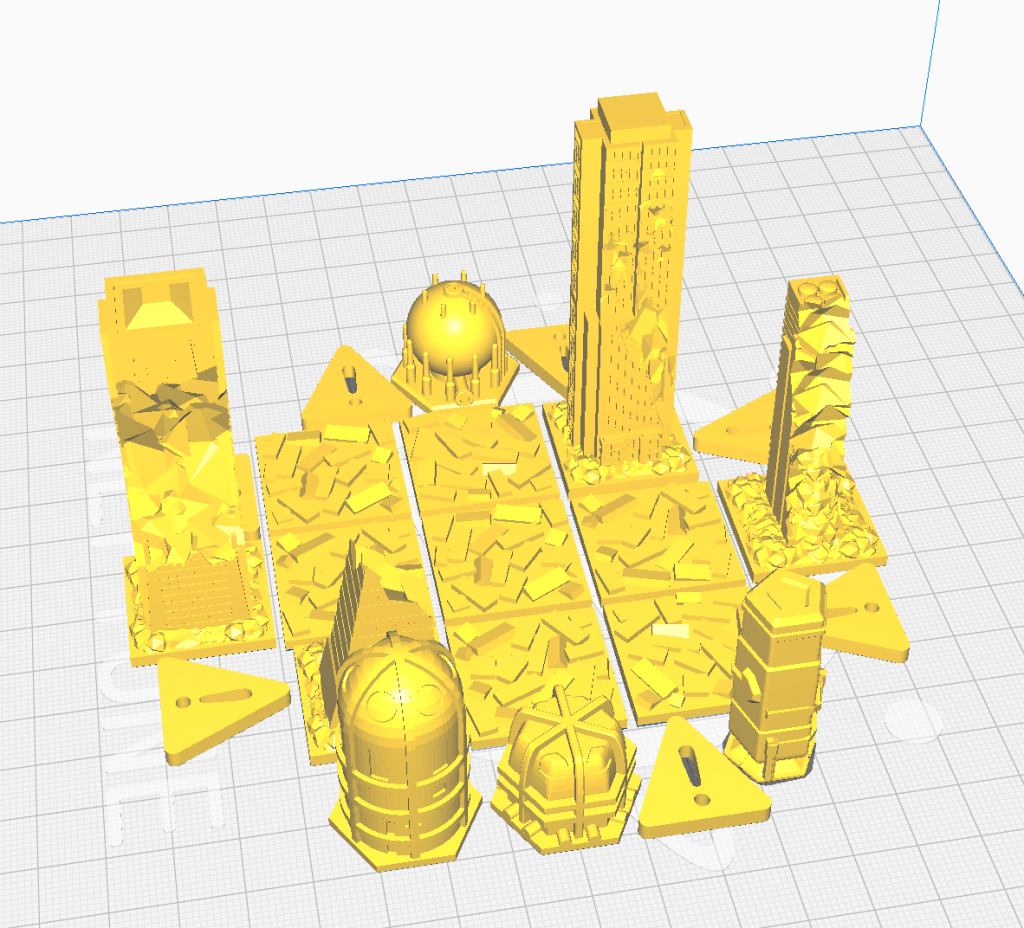 - GreebleCity for the buildings: https://www.thingiverse.com/search?q=greeblecity+ruins&page=1