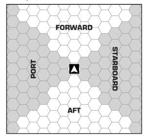 Void Admiral uses front/rear/side arcs for weapons, and these essentially remain the same on a hex mat: