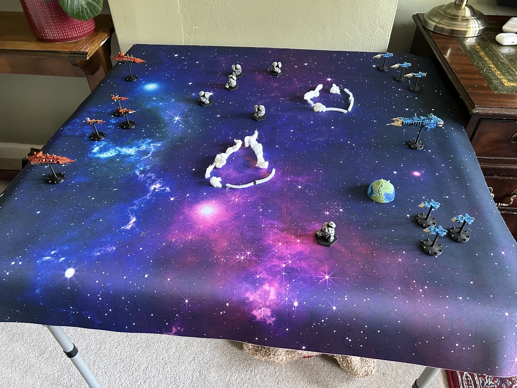 In my original Void Admiral post I spoke about a conversion to hex maps, and the use of Paizo Starmaps with a hex grid – neither of these things panned out, but I did order a faint hex grid printed onto a nebula mouspad mat. It might end up being a little TOO faint, but should be usable.