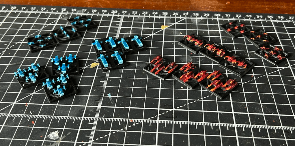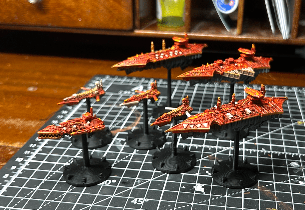 The renegades are Chaos-analogues, and the lineage shows in the art, so the Chaos fleet STLs were an easy choice: