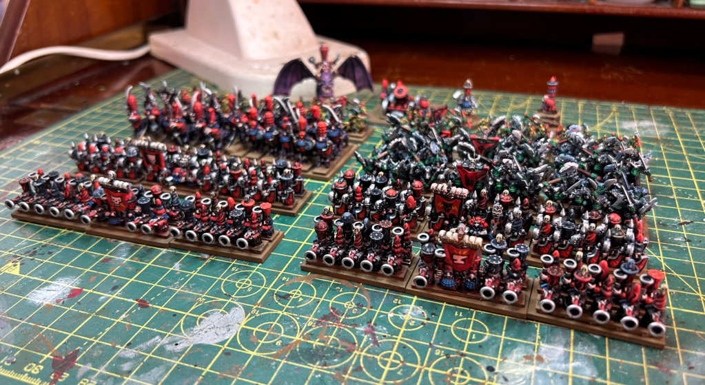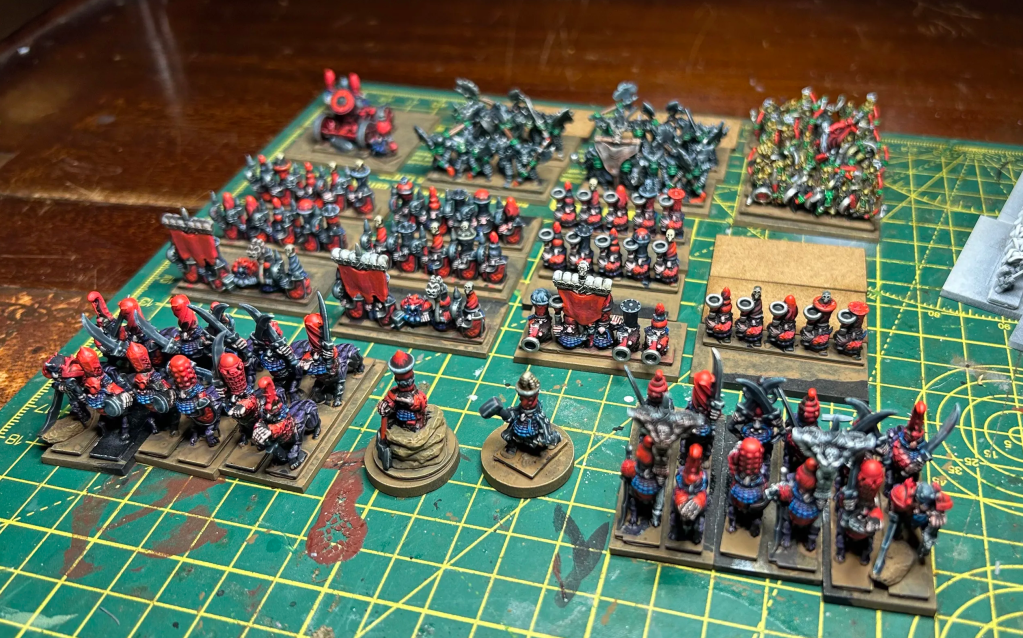 Finding myself with a resin printer and unlimited access to STLs, I thought it would be fun to print off a 28mm Chaos Dwarf army – unfortunately, this is as far as I got: