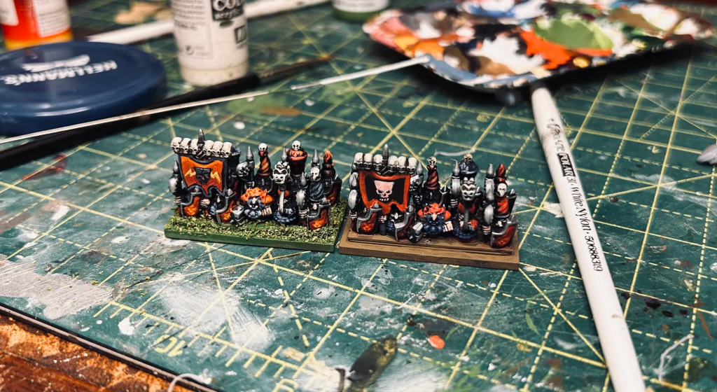 I thought it would be fun to simulate the old WD/painting guide style! I ended up with a relatively reasonable printed army consisting of warriors, blunderbusses, hobgoblins and wolfriders – but I just couldn’t justify the time and space for a 28mm army!