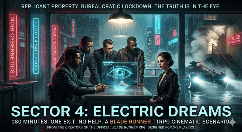 The action starts in-media-res with the players as a Rep-Detect squad in an interrogation room. The team have captured a Nexus-8 replicant called Kora, her existence already cause for instant retirement, but also accused of industrial espionage against the Wallace Corporation: the theft of a data wafer containing confidential information.